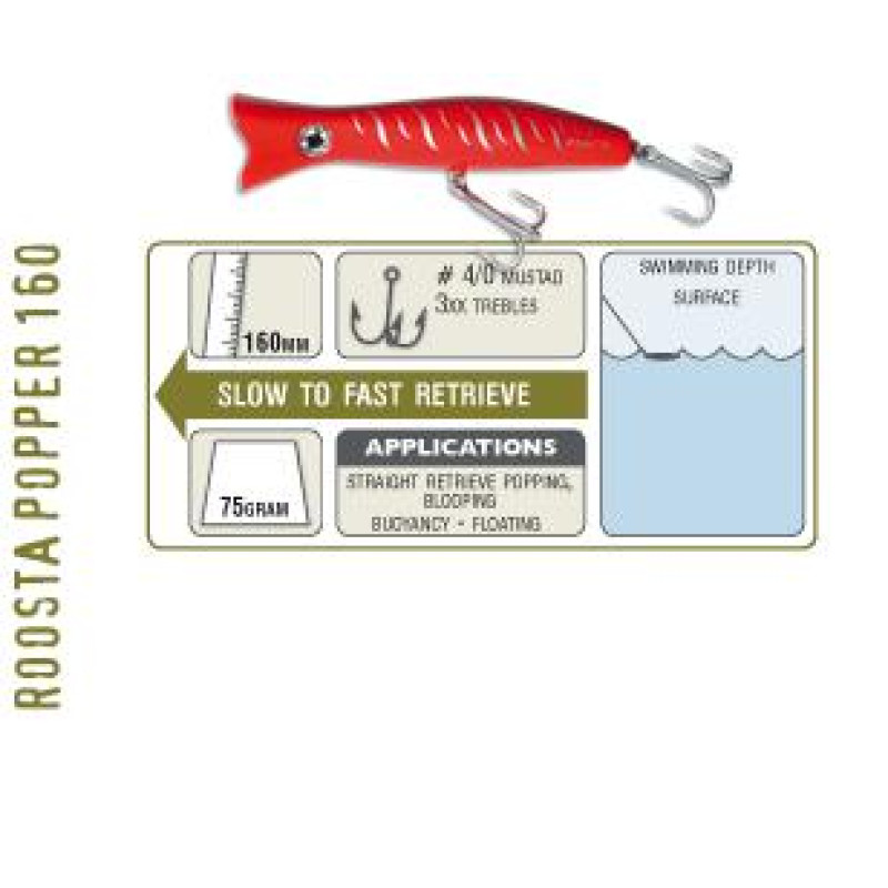 The Roosta Popper 160 is designed and build to get the maximum noise and splash out of a medium sized popper, while retaining superior casting capability, excellent strength and high durability.