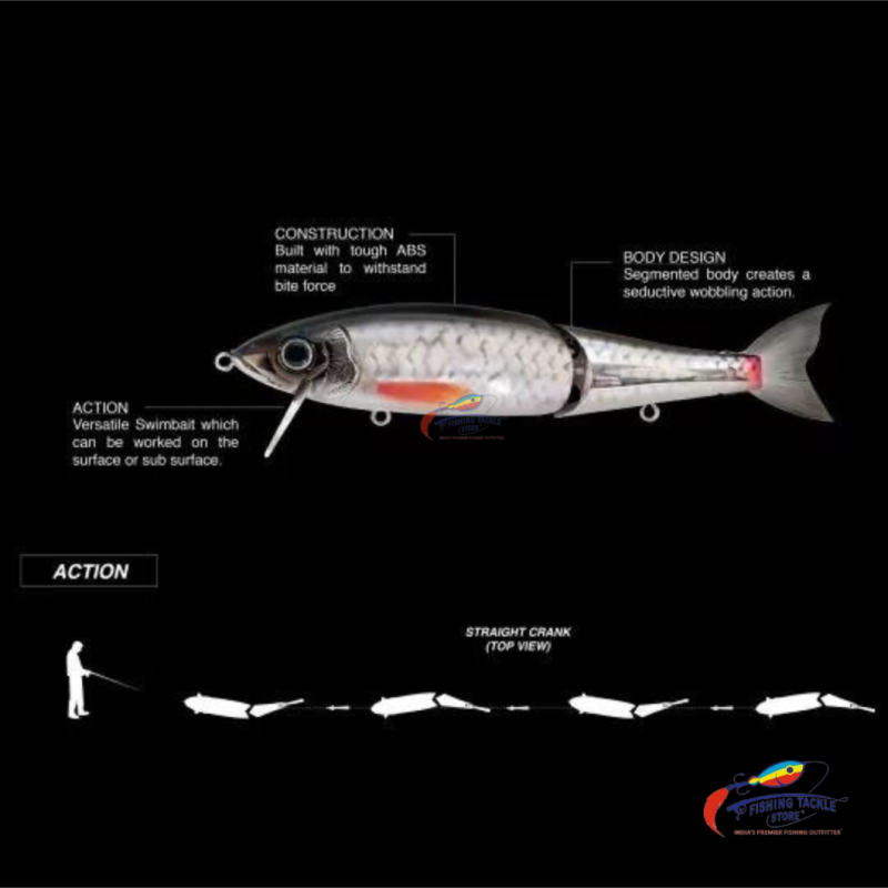 The Awake is a double jointed swimbait that is able to be worked as a wake bait at surface level on a slower retrieve, or a shallow diving swim bait on faster retrieve.