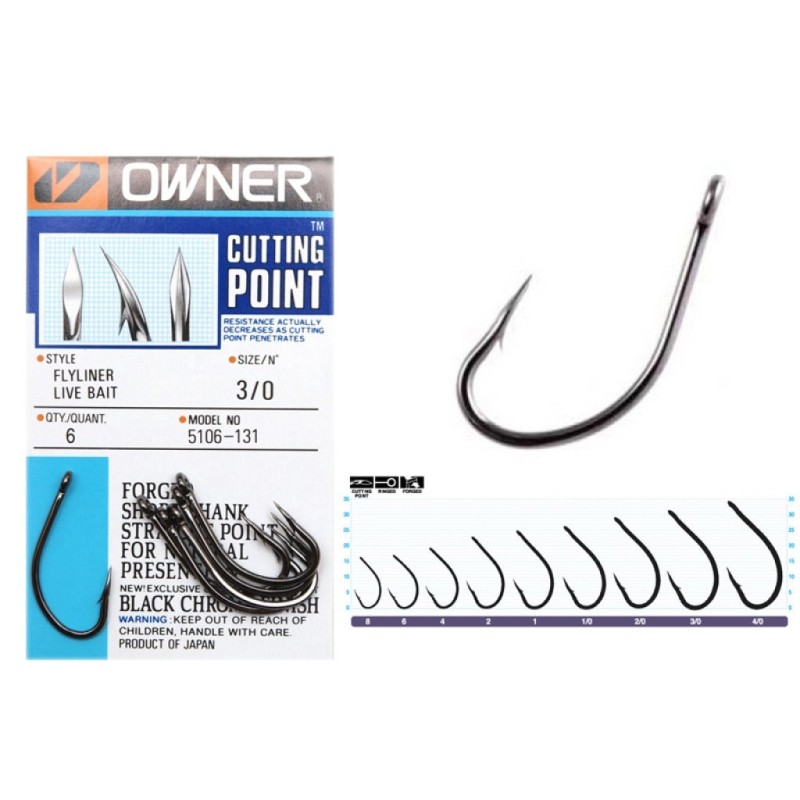 The Owner Ringed Flyliner Live Bait Hooks are super strong; welded rings in the eye of each hook reduces stress on the hook, making overall unit stronger. Owner Flyliner Ringed hooks also allow live bait to swim more naturally, and once hooked up, the hook pivoting on the ring tends to wear less of a hole in an active fish's mouth. These Owner Ringed Flyliner Live Bait Hooks work very well with live bait; the hooks aren't so big that they skewer the bait and kill it.