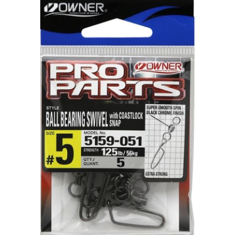 Description: For your terminal tackle needs, choose from Owner’s High-Performance Hyper Ball Bearing Swivels and Hyper Ball Bearing Swivels with Coastlock Snaps. Both swivels feature super-strong stainless steel construction with a corrosion resistant black chrome finish. Ultra smooth swivel action offers no-twist protection when trolling and for big game leader connections