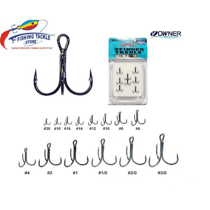 The Stinger Treble Hook features wide-gap round bend hooks that bite deep and hold hard, allowing you to get more fish that you hook in the boat. The innovative feature is the way the eye is attached to the three hooks. Other treble hooks are constructed in two pieces, one wire bent to create the eye and two hooks as one piece and the third hook soldered on as the second. The Owner Stinger Treble Hooks are painstakingly engineered from four separate pieces, three hooks soldered in a perfect trilateral configuration and the eye attached directly on top of the center of the hooks for a balanced treble hook that will hang perfectly and help your lure run straight and true.