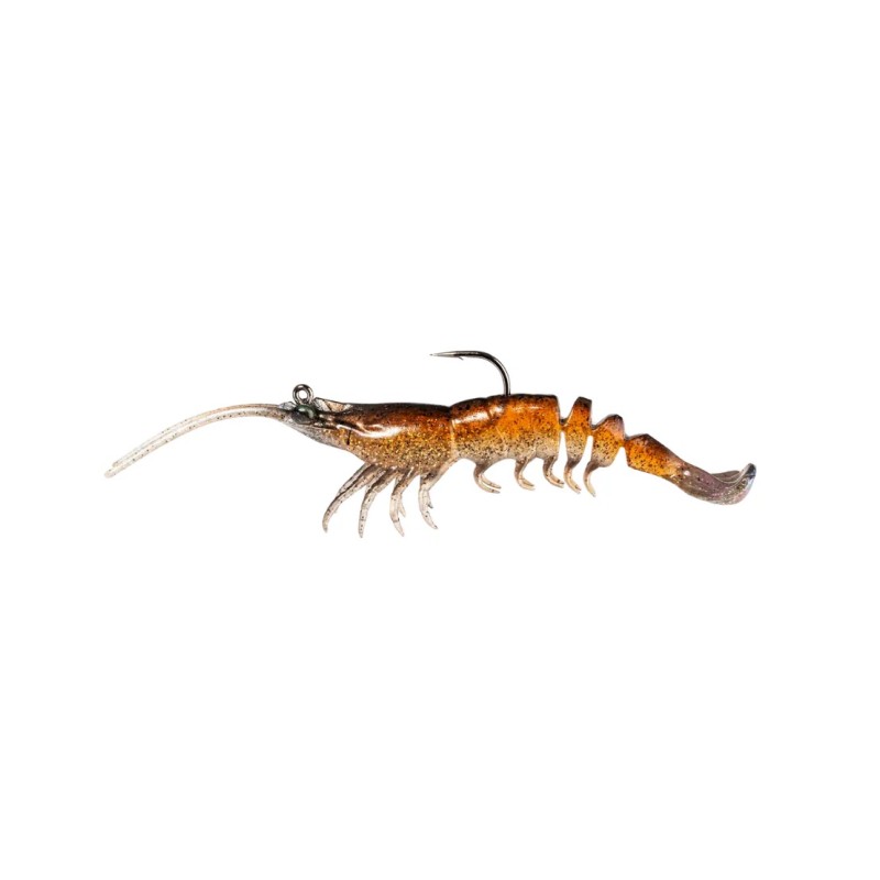 The PrawnstarZ™ is a highly realistic live shrimp clone, maintaining a natural horizontal posture due to its balanced ElaZtech® body. Its tail fan, antennae, and legs mimic authentic shrimp movements, and the abdominal segmentation enhances the tantalizing action. The internal glass rattle and hand-painted color patterns further enhance its life-like appearance for the new ultimate shrimp lure!